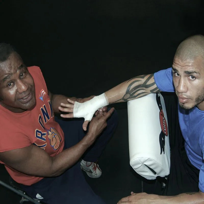 Emanuel wrapping Miguel Cotto before the WBA Jr. Middleweight championship fight.