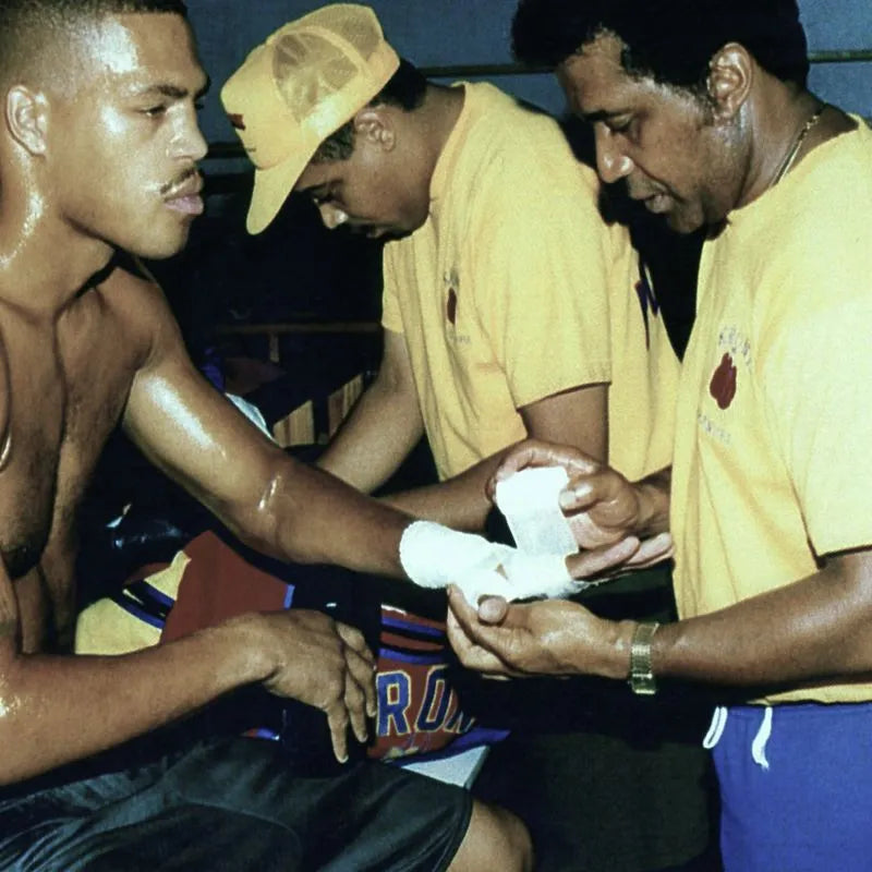 Emanuel wrapping Gerlad McClellan prior to his WBC middleweight championship fight.