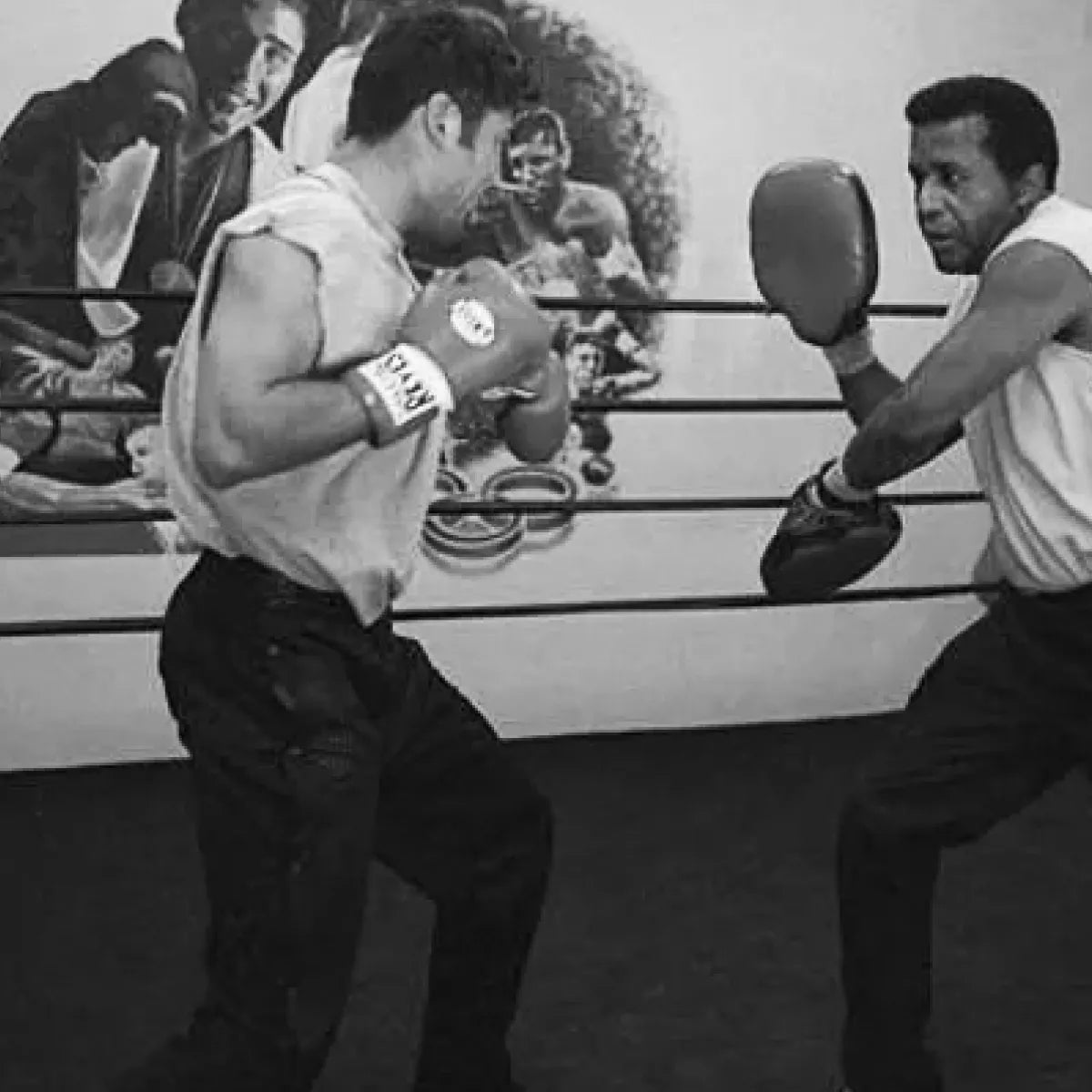 Emanuel wrapping Thomas Hearns at the Original KRONK Gym.