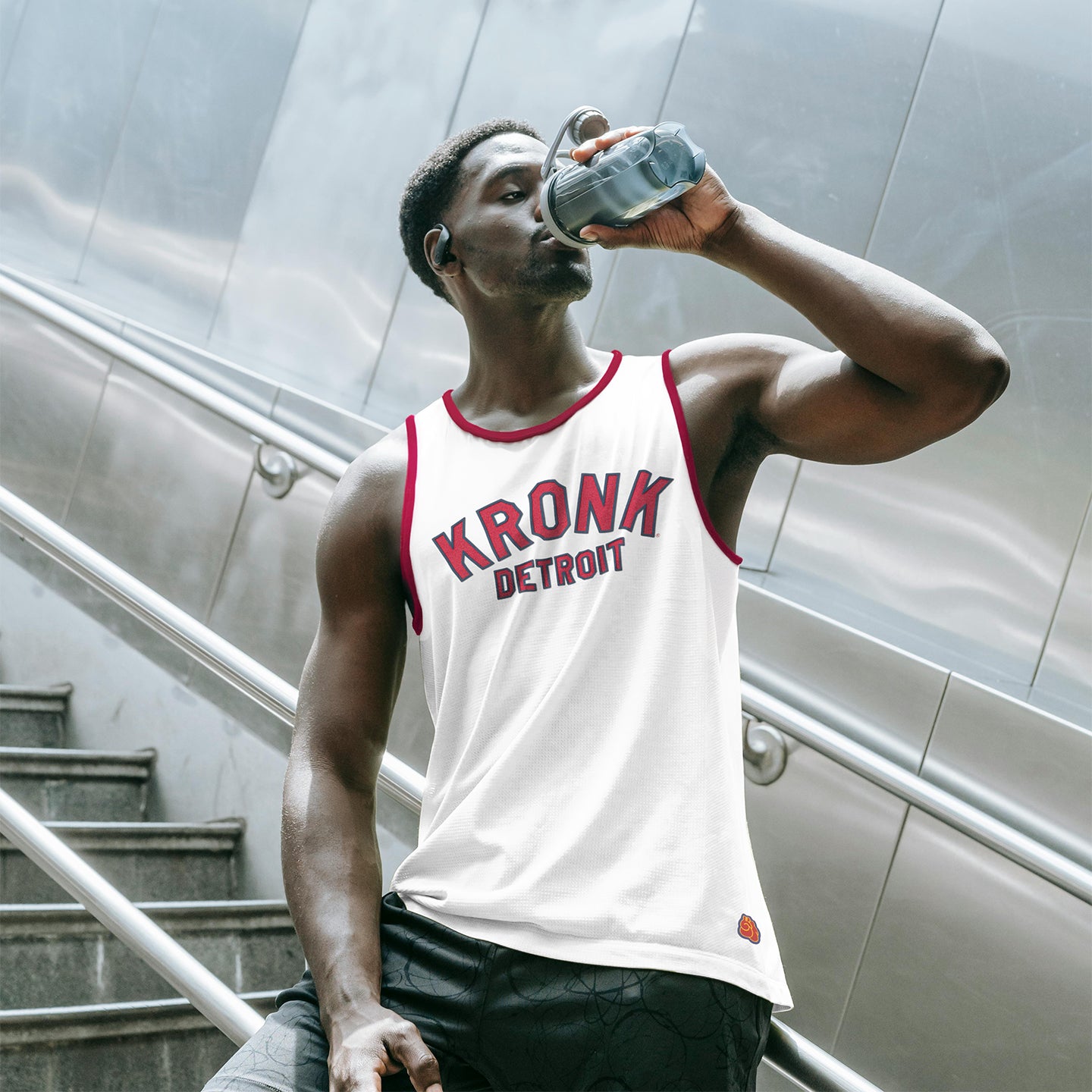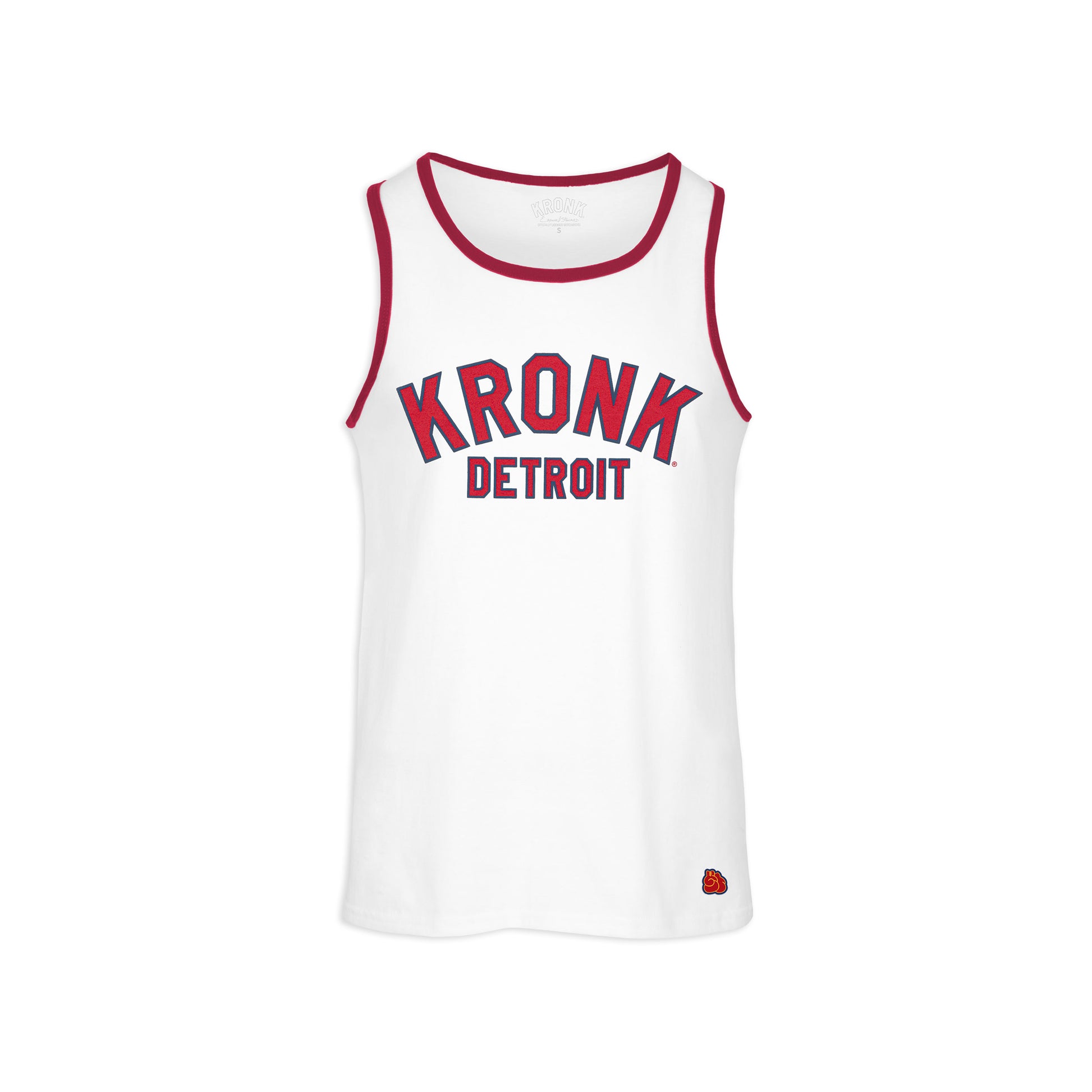 The KRONK 'Detroit' Ringer Tank brings vintage gym energy to the warm-up, cool-down, and everything in between. With its bold red trim and clean white body, this sleeveless essential nods to Detroit’s fight legacy — and the relentless hustle that built it.