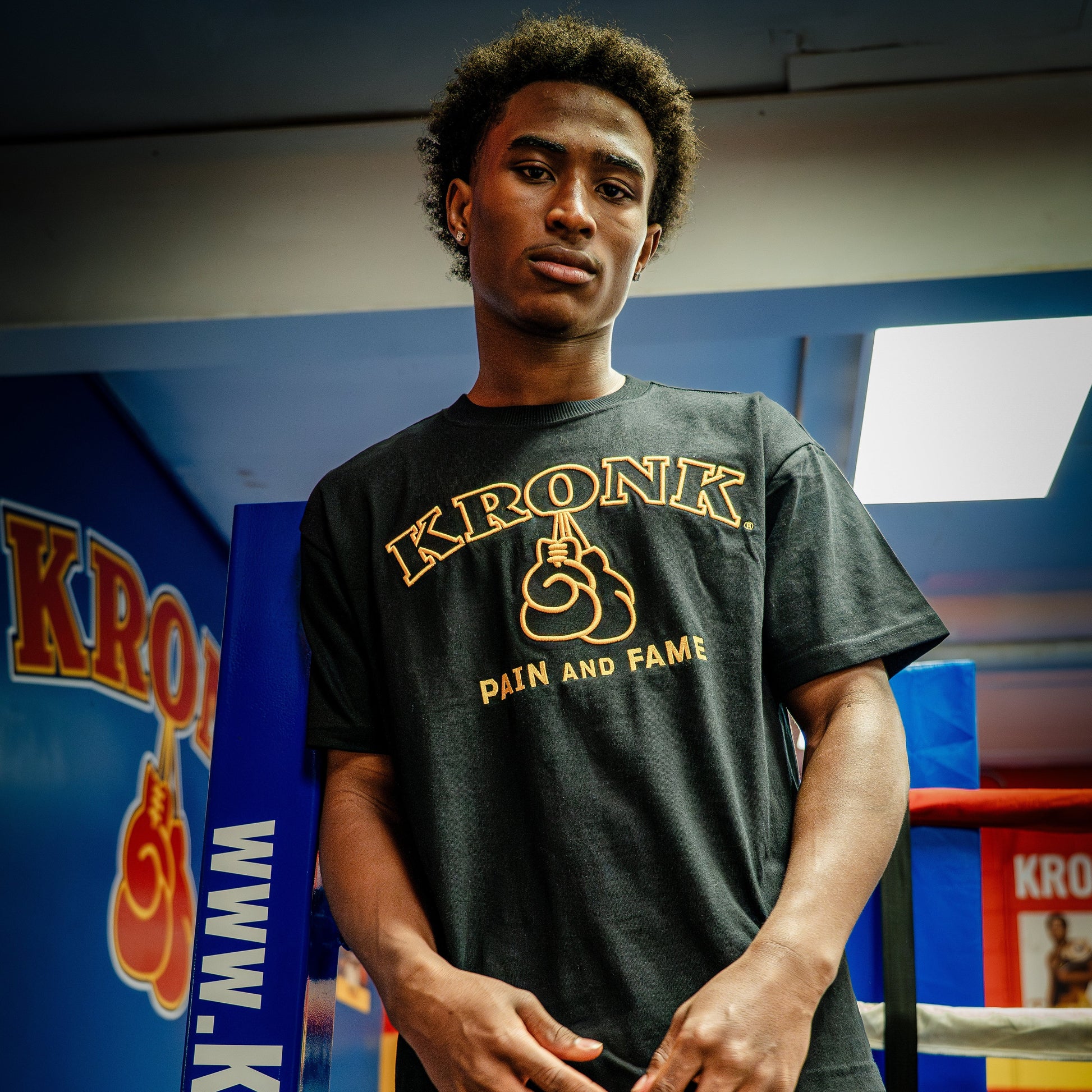 • Design: Full front gold puff embroidery KRONK® Boxing Team logo